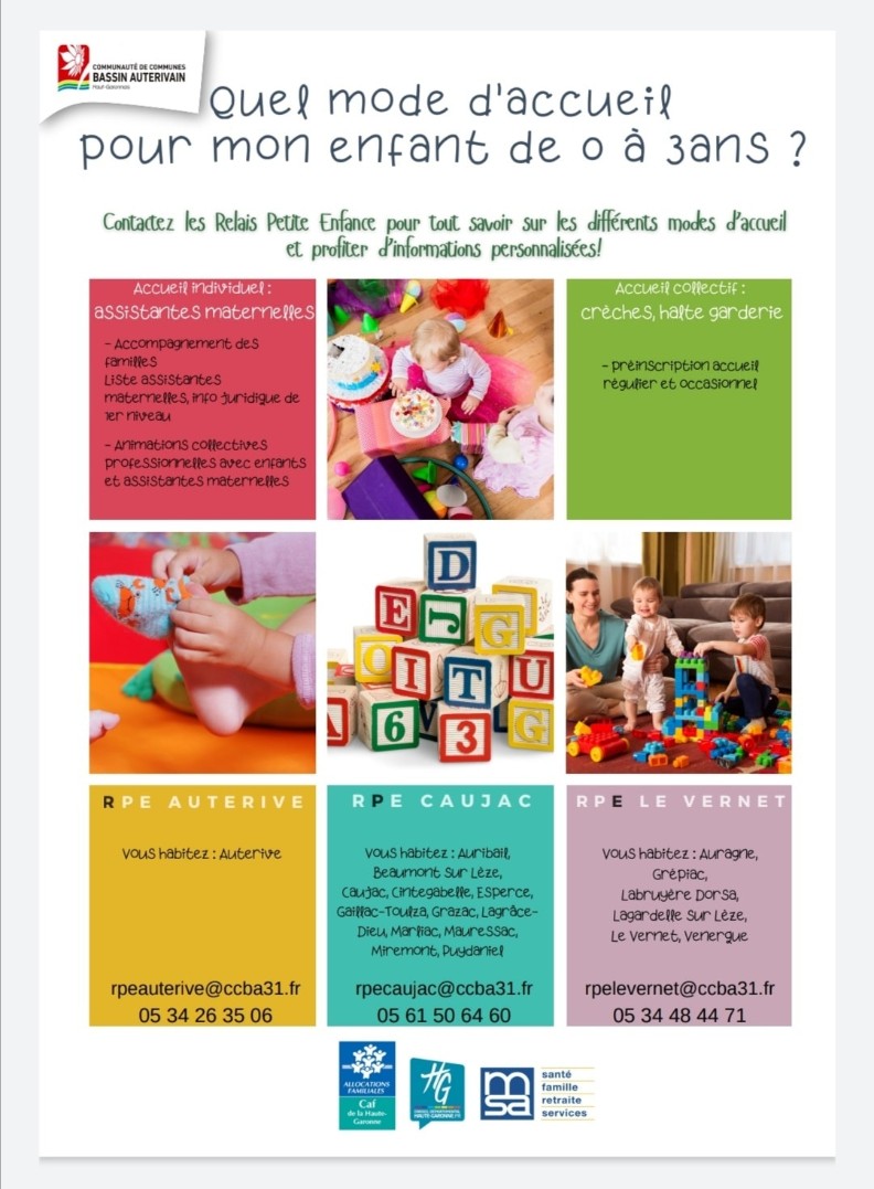 Une question, un renseignement ou un problème, contacter les relais petite enfance d'Auterive, Caujac et Vernet.